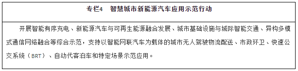 第二节 推动新能源汽车与交通融合发展 发展一体化智慧出行服务。加快建设涵盖前端信息采集、边缘分布式计算、云端协同控制的新型智能交通管控系统。加快新能源汽车在分时租赁、城市公交、出租汽车、场地用车等领域的应用,优化公共服务领域新能源汽车使用环境。引导汽车生产企业和出行服务企业共建“一站式”服务平台,推进自动代客泊车技术发展及应用。