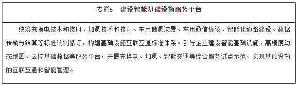 第四节 加强标准对接与数据共享 建立新能源汽车与相关产业融合发展的综合标准体系,明确车用操作系统、车用基础地图、车桩信息共享、云控基础平台等技术接口标准。建立跨行业、跨领域的综合大数据平台,促进各类数据共建共享与互联互通。